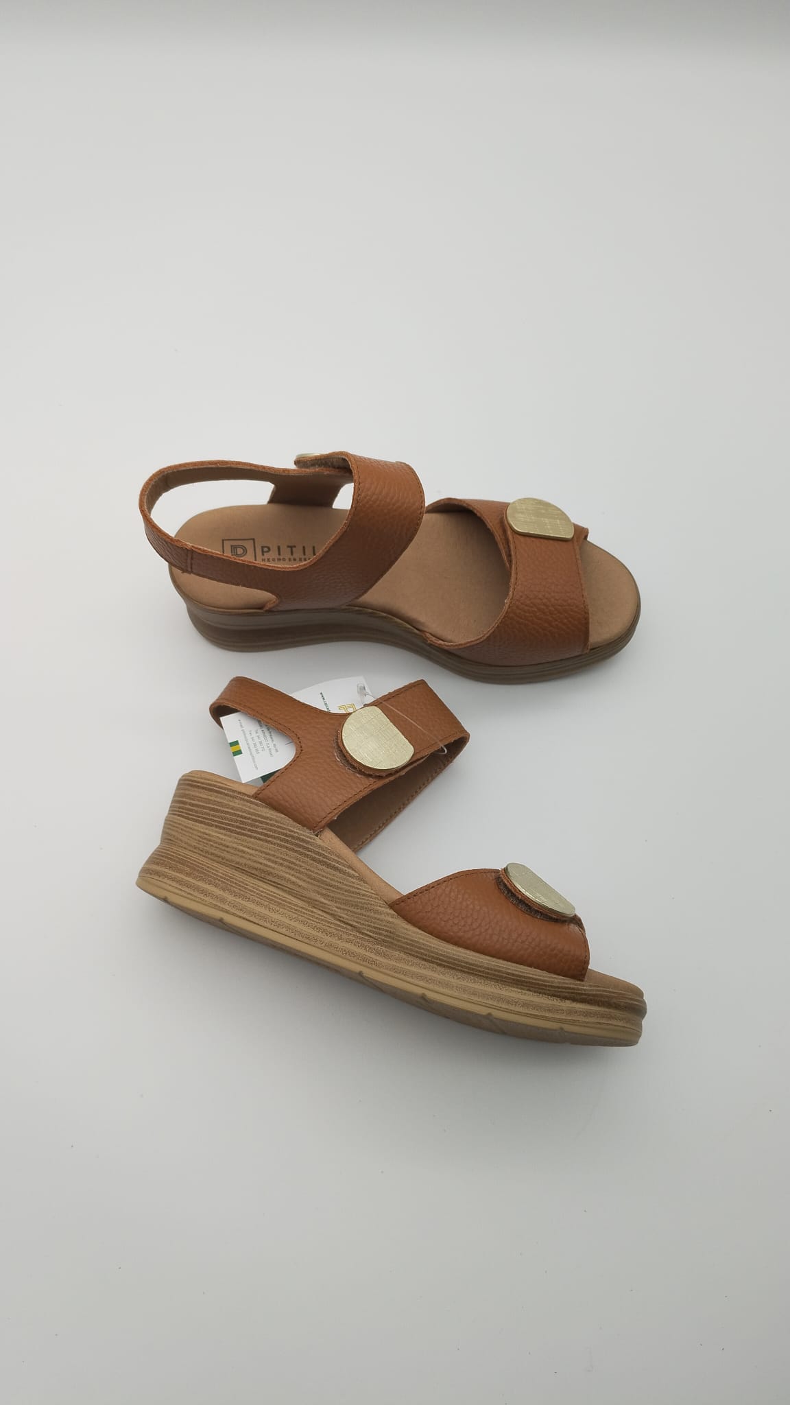 ✨ Sandalia Pitillos en piel color cuero con velcros – Modelo 11054 ✨