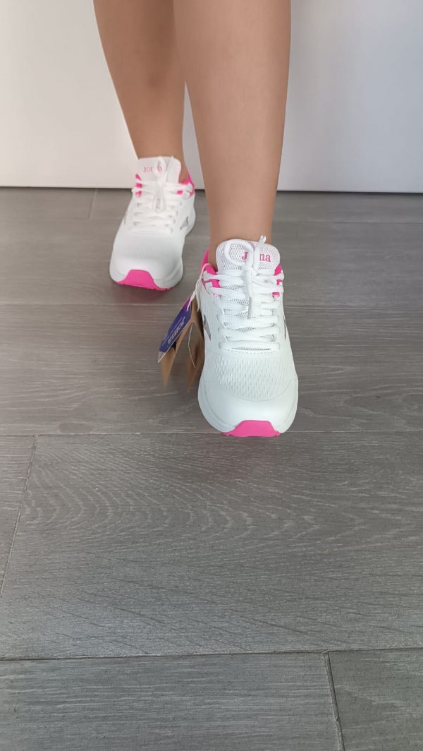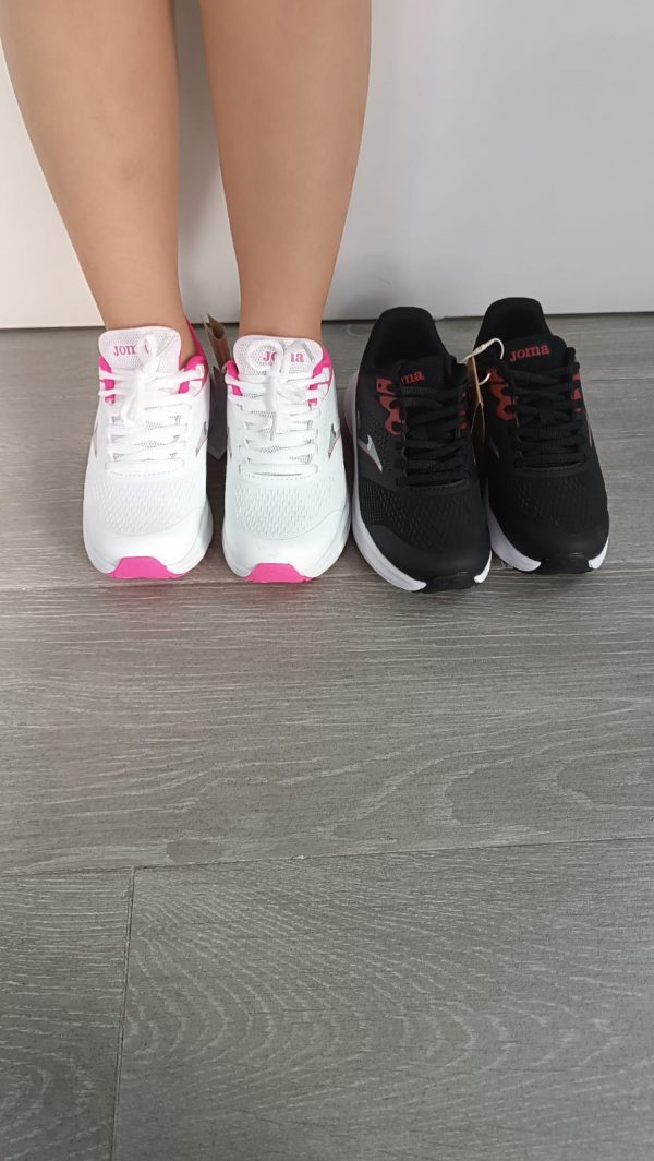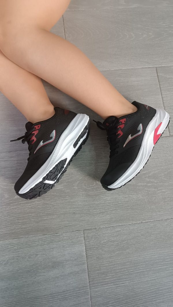 Estas zapatillas Joma combinan comodidad, ligereza y estilo para tu día a día o entrenamientos. Diseñadas en color negro con detalles en rojo y gris, y blanco con fucsia. cuentan con una suela blanca de gran amortiguación que proporciona una pisada suave y estable.