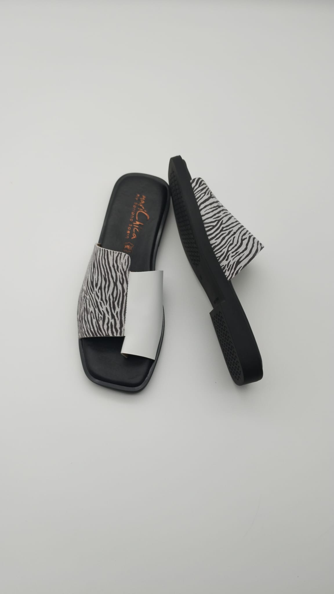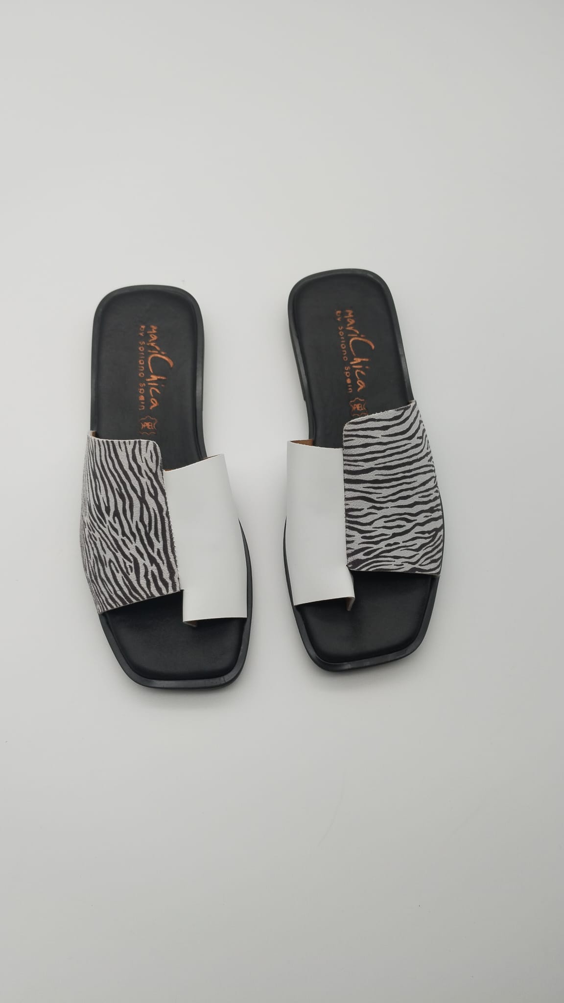 Sandalias Planas Mari Chica Blanco Cebra 2224 – Elegancia y comodidad en cada paso