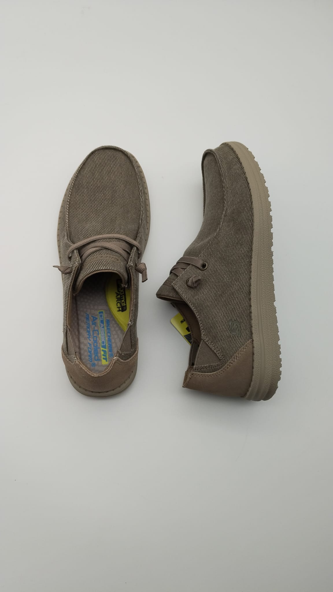El interior incorpora la tecnología Skechers Air-Cooled Memory Foam®, proporcionando una amortiguación y comodidad superiores que mantienen tus pies frescos y relajados incluso después de largas jornadas de uso. La suela de goma flexible garantiza tracción y estabilidad en cada paso.