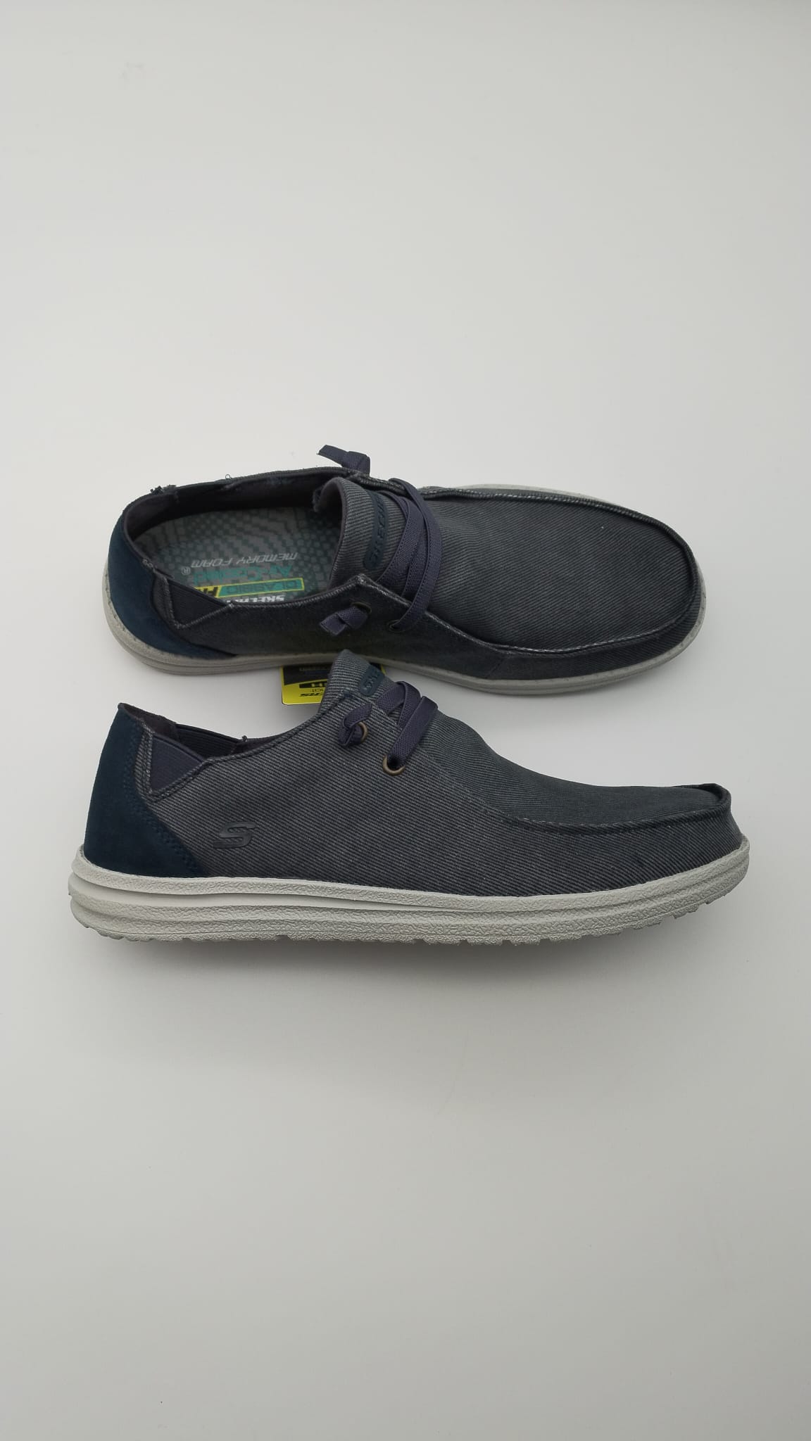 Descubre la combinación perfecta de estilo urbano y comodidad con Skechers Melson-Raymon 66387 en tonos azul y kaki. Estos zapatos masculinos casuales tipo mocasín están diseñados para acompañarte en tu día a día con un look moderno y desenfadado, ideal para un estilo street wear relajado pero con carácter.