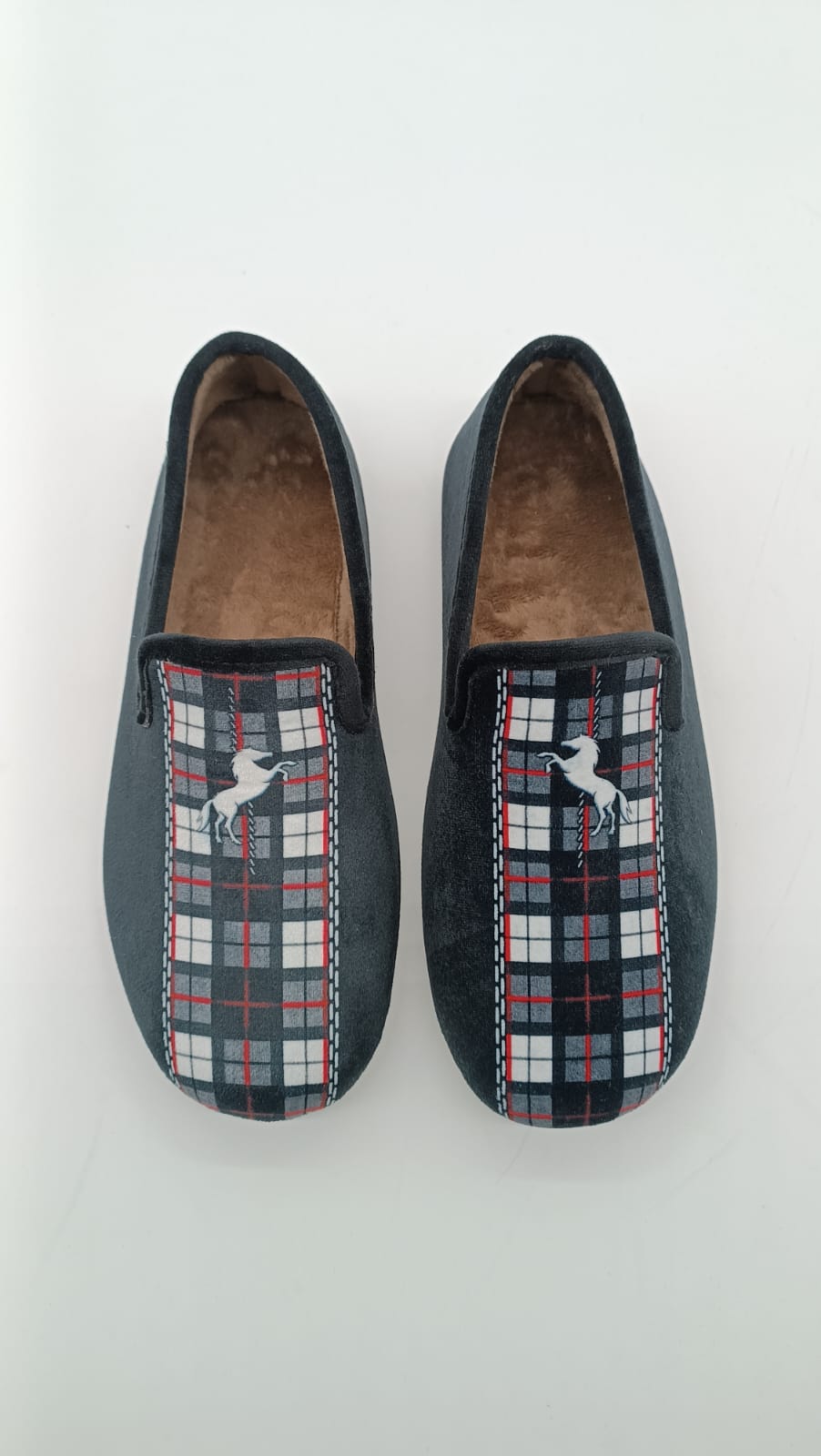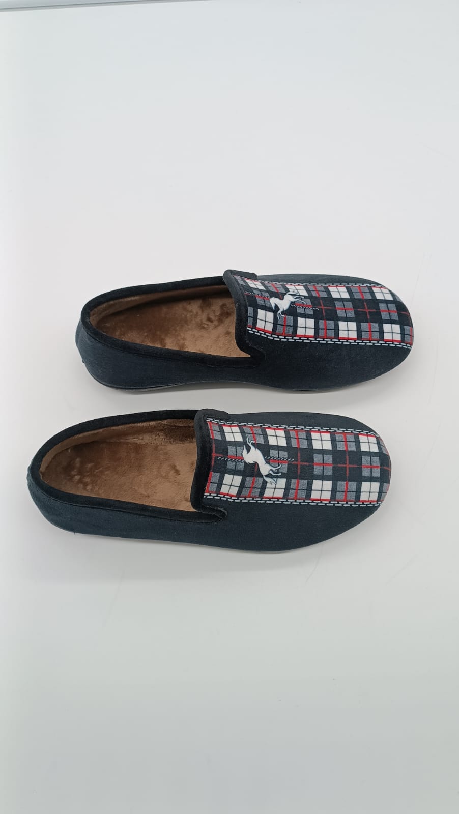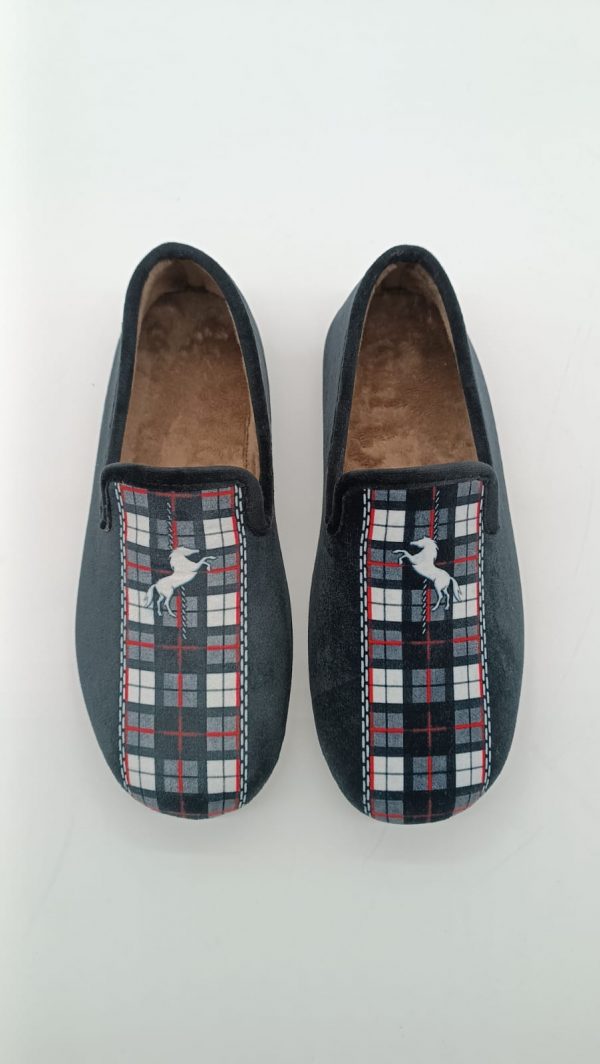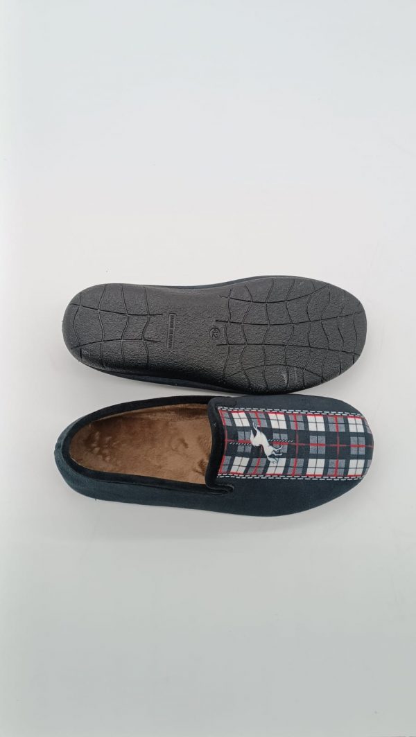 Zapatillas de casa invierno cerradas para caballeros en color negro con estampados en blanco.