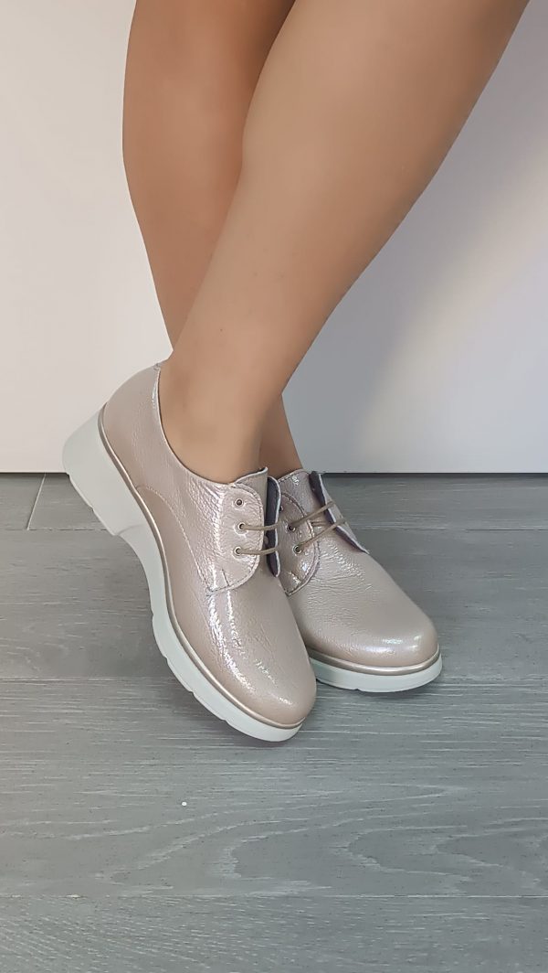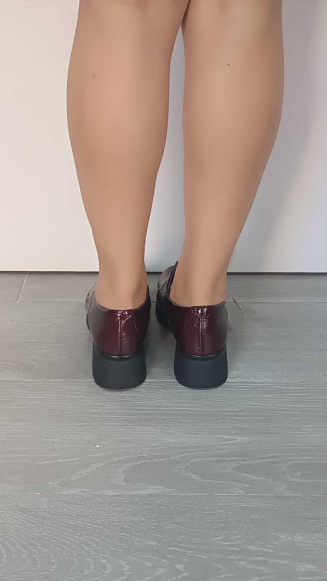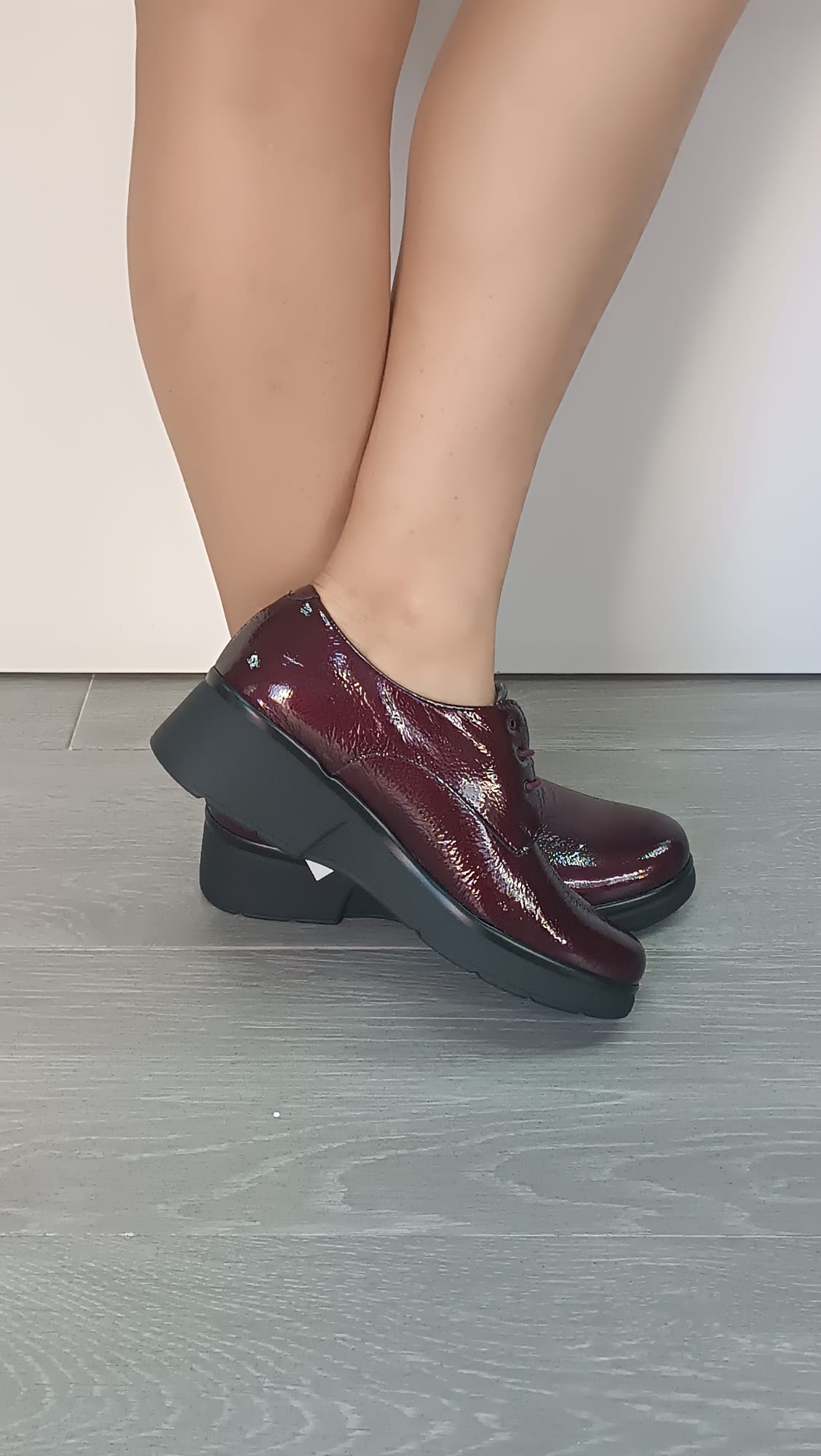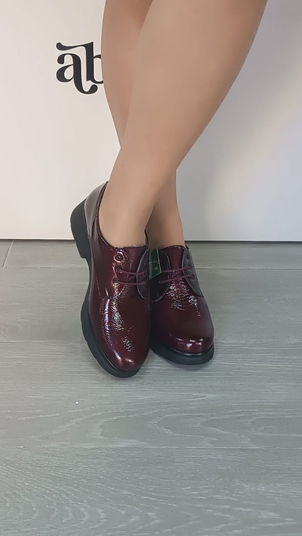 Blucher en Charol Piel Pitillos Mujer – Color Burdeos y Piedra (Modelo 10756)