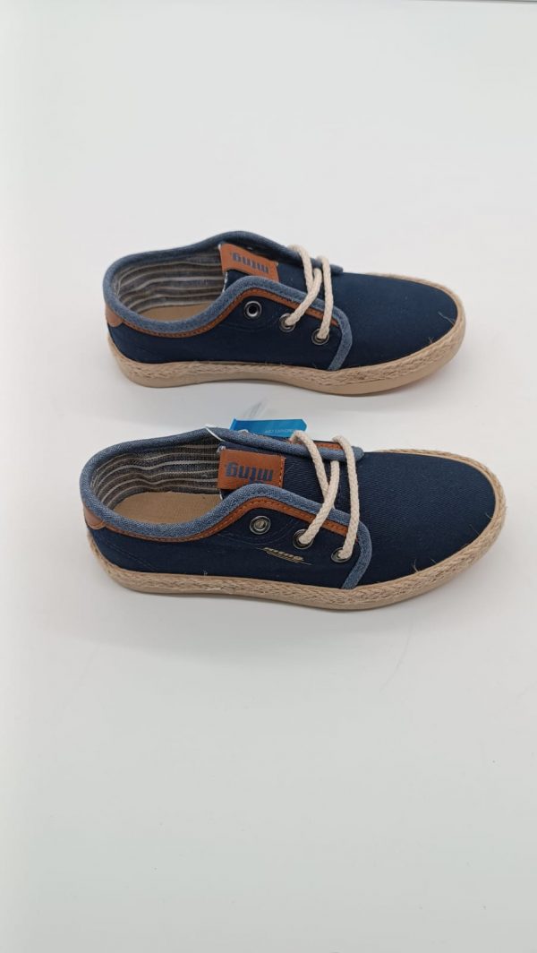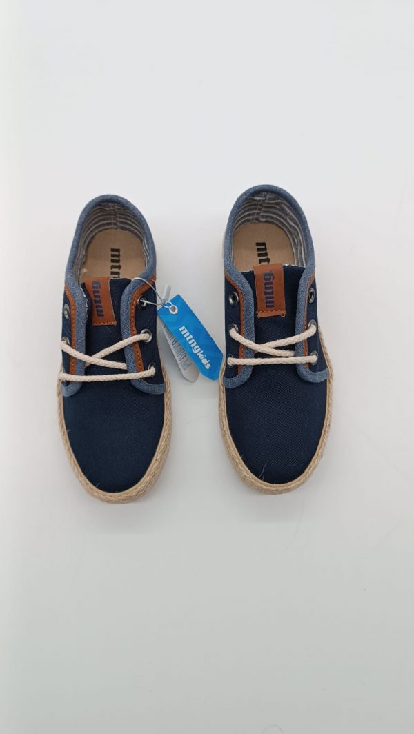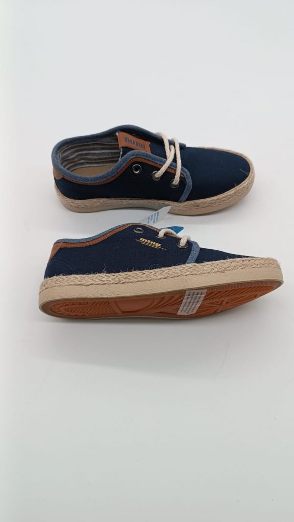 Zapatillas Mustang para niños en lona con suela esparto y cordones beige.